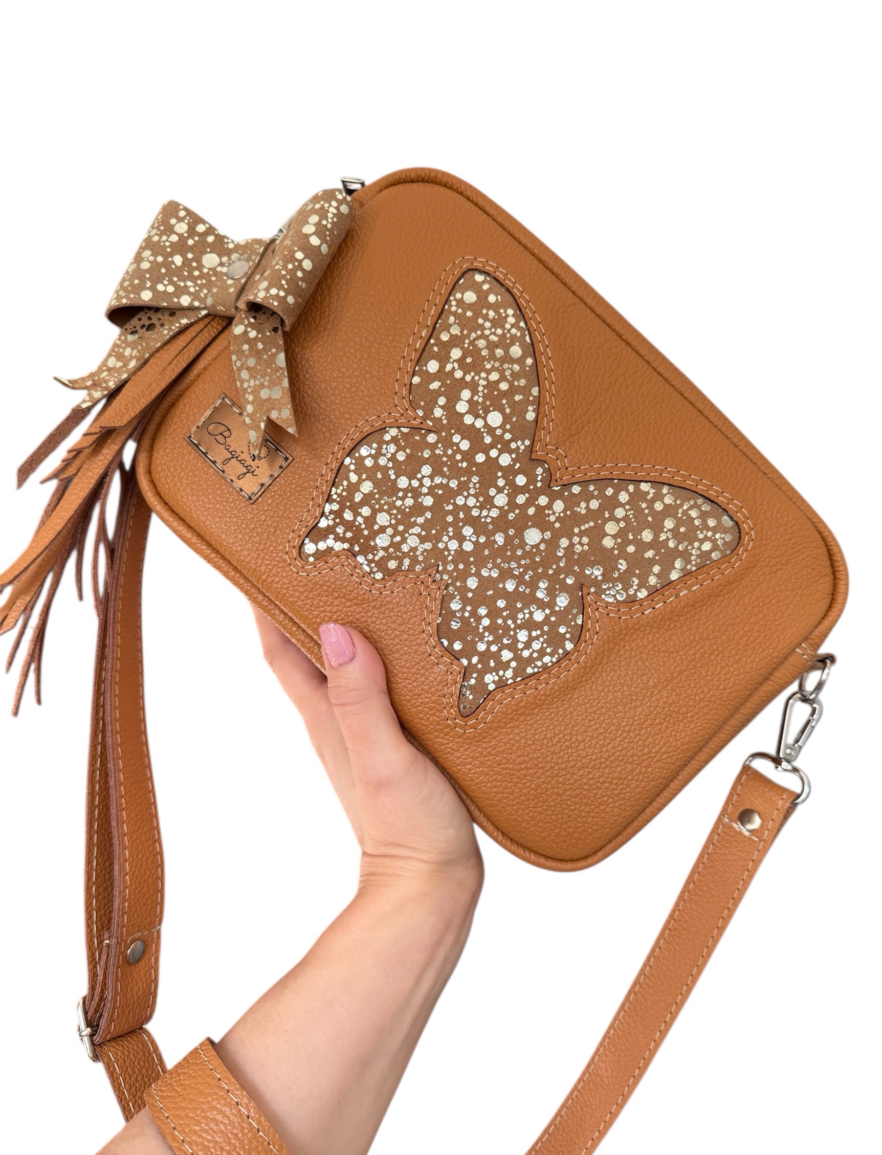 Napisz pierwszą opinię o „Listonoszka skóra naturalna Karmel/ złote kropki”