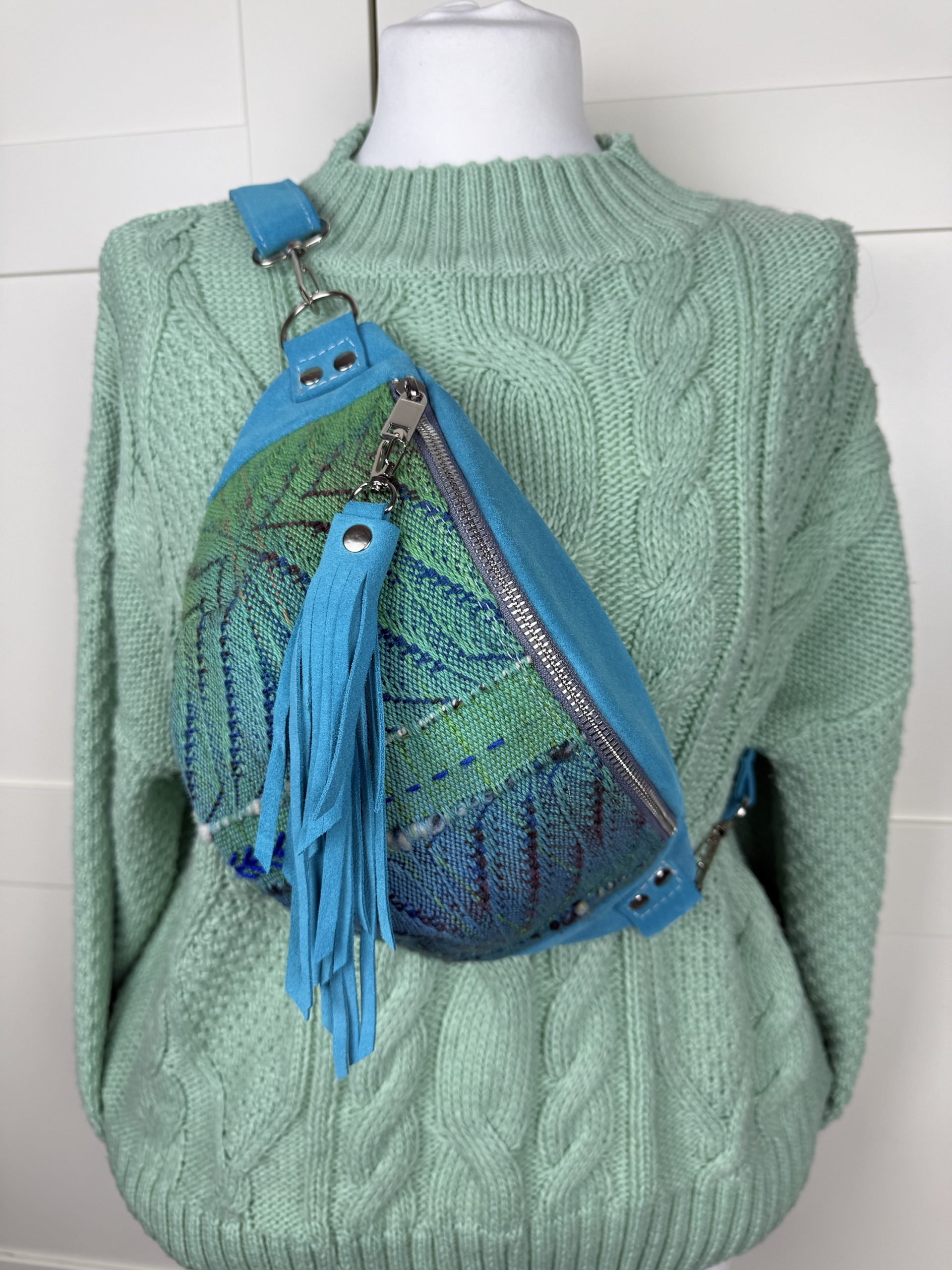 Nerka M turkusowy welur naturalny/ skrawek chusty Slavic wraps