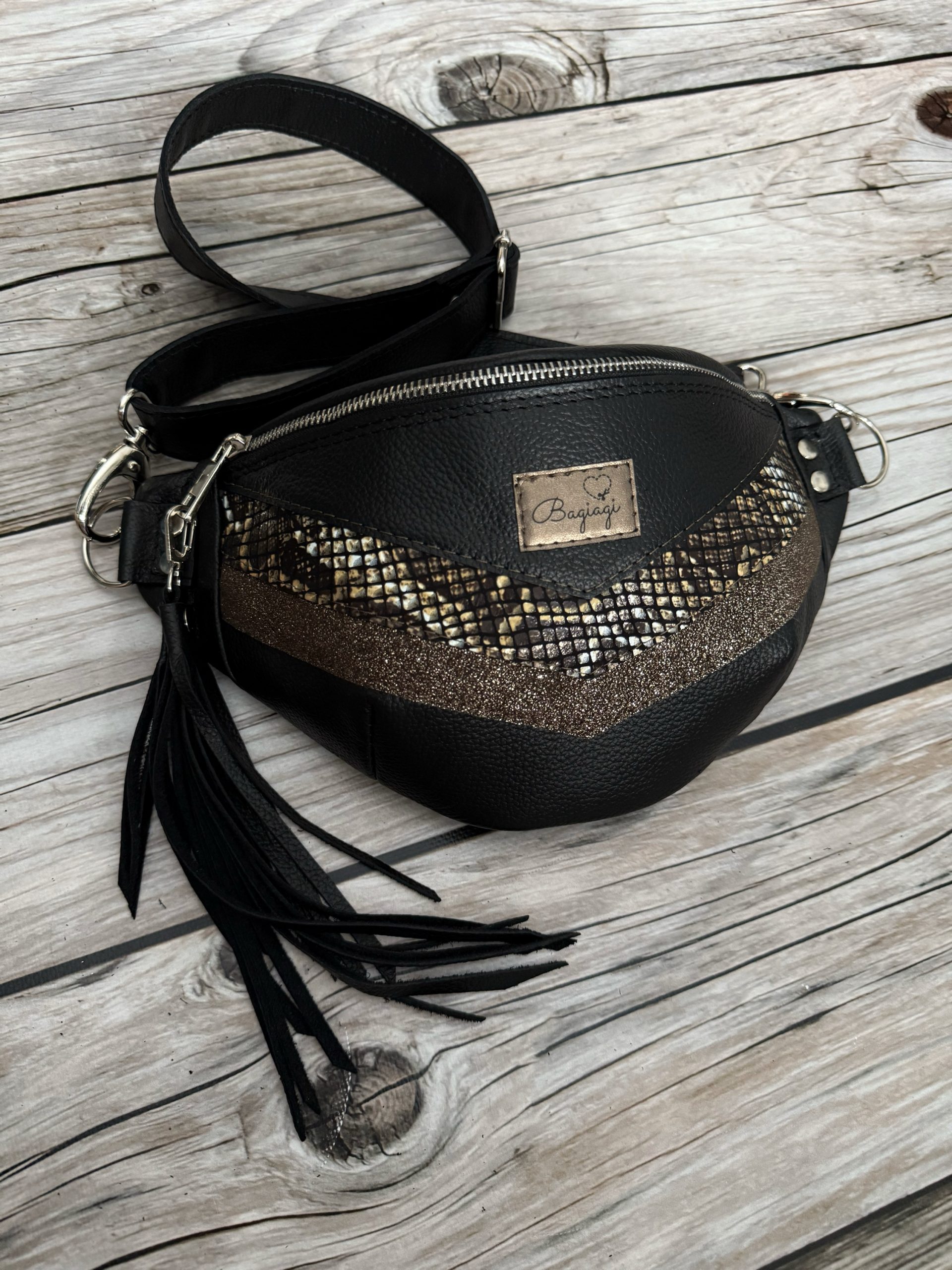 Saszetka nerka Skórzana wąż/brokat