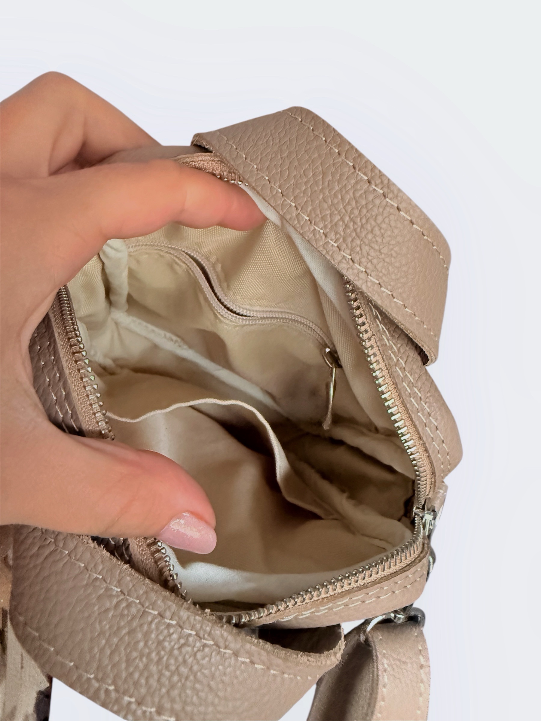Wewnątrz kieszeń na zamek oraz kieszeń wsuwana.